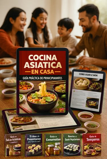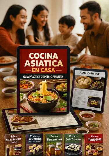 Un ebook diseñado para llevarte desde cero al mundo de la cocina asiática, con explicaciones claras, recetas sencillas y técnicas adaptadas para quienes nunca han cocinado comida asiática en casa.
